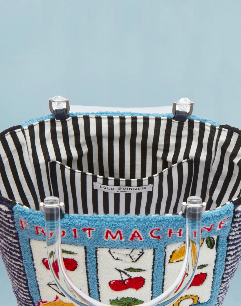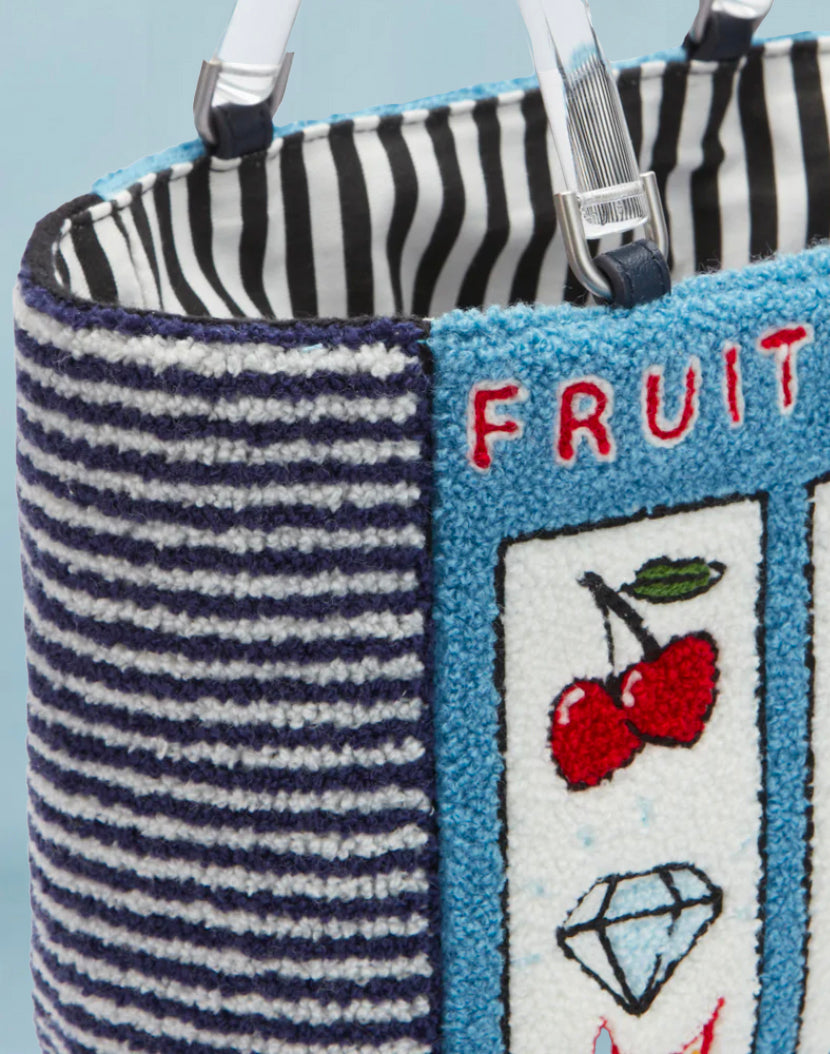 Exterior Composition: 100% Polyester. Interior Composition: 100% Cotton. Handles: Acrylic handles
