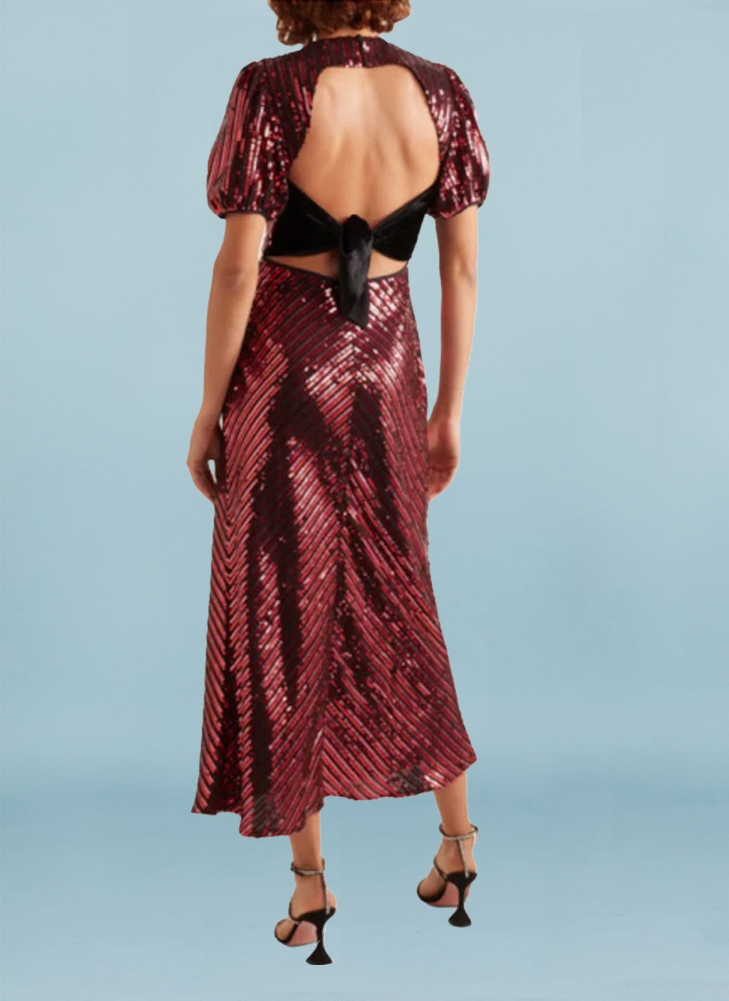 Fun sequin party dress, with velvet straps at the back which can help conceal a bra if necessary!