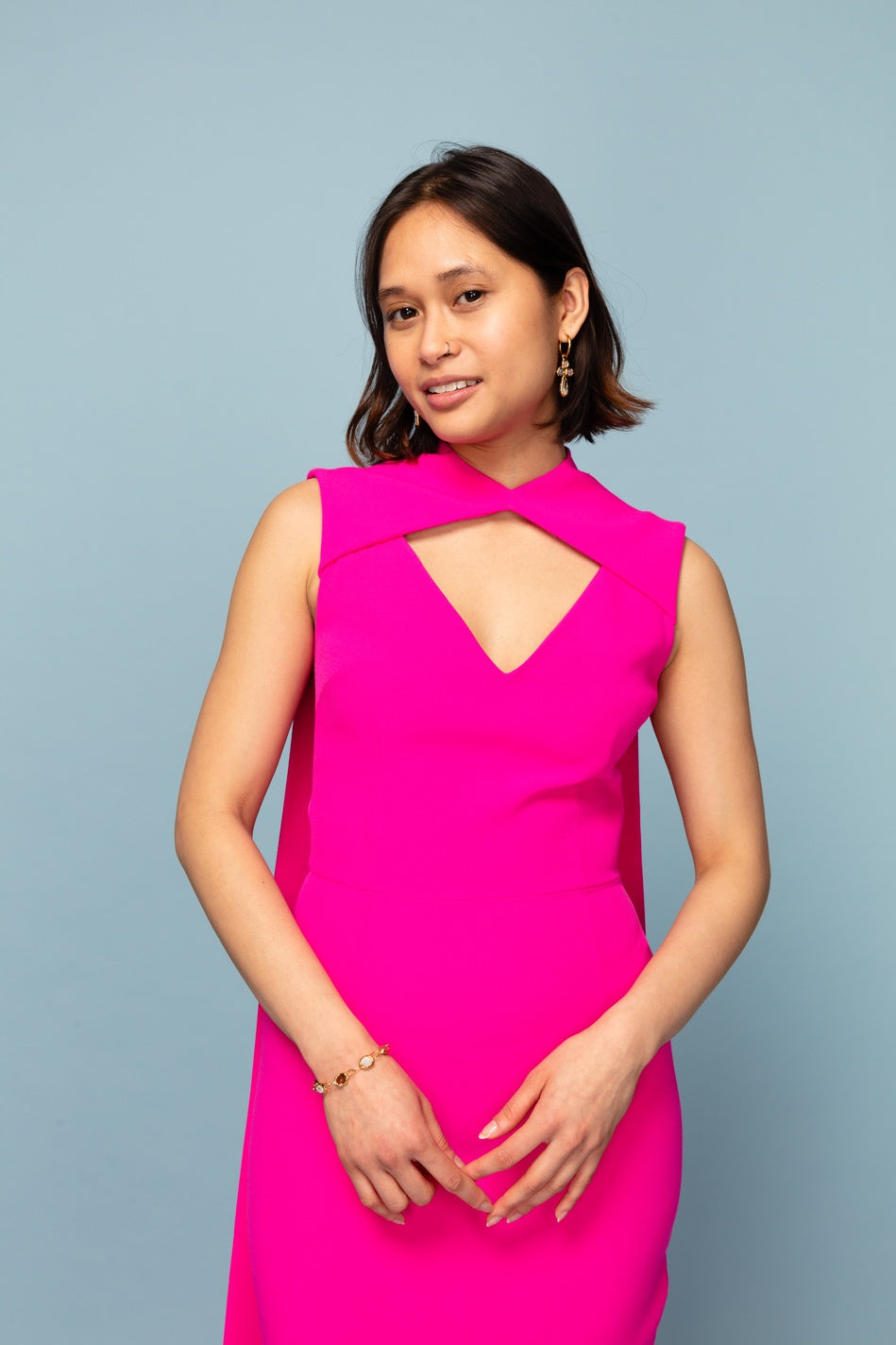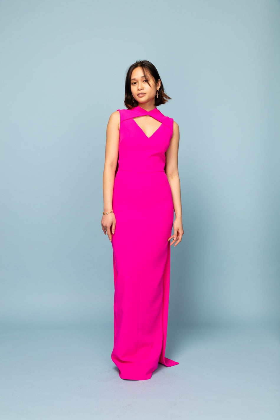 Elegant yet bold. This dress has a beautiful diamond cut out on the neck, and buttons at the back. The long strands hang low to give off extra vibes. You will be sure to stand out in this look! NB - This item has some very minor signs of wear, like slight bobbling, which are not noticeable when on!