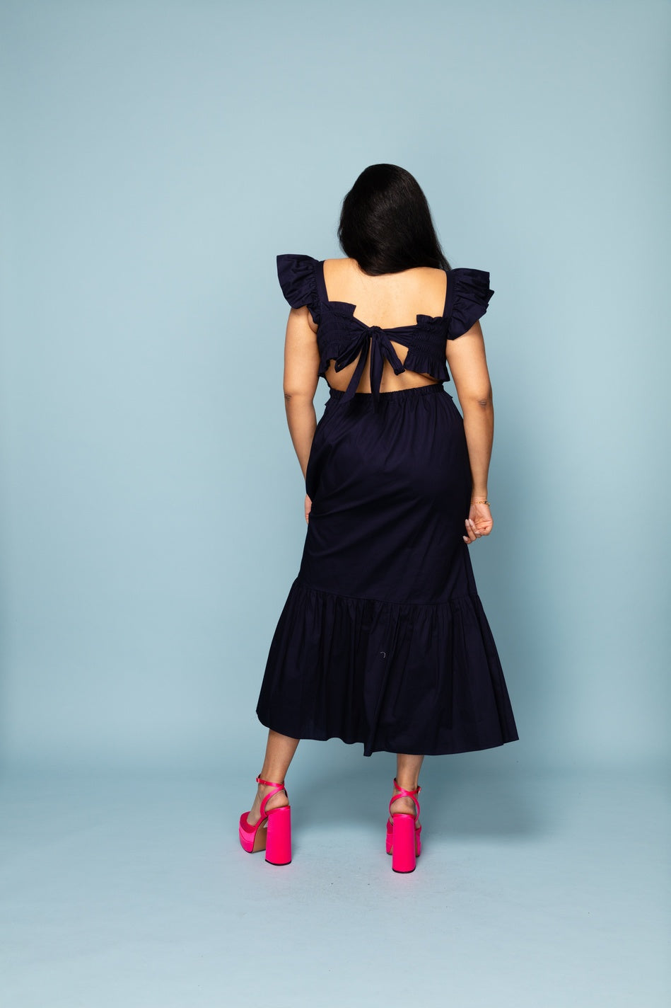 Super comfortable dress with stretchy top and flattering sleeves. The dress ties at the back, which can be used to hide the bra strap
