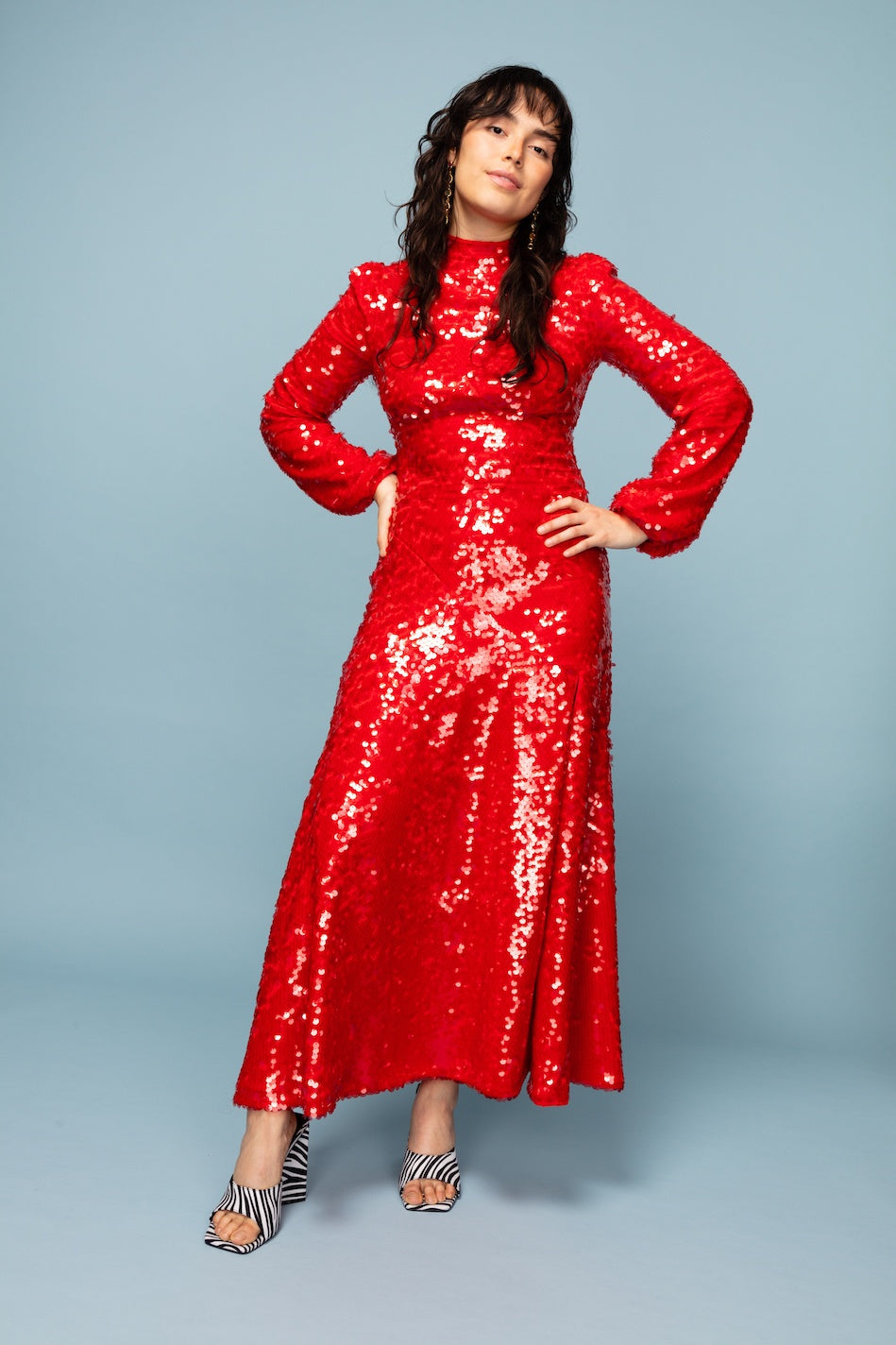 This dress is cut on the bias to create a beautifully falling feminine silhouette. It has elasticated cuffs and a concealed zip fastening along the back