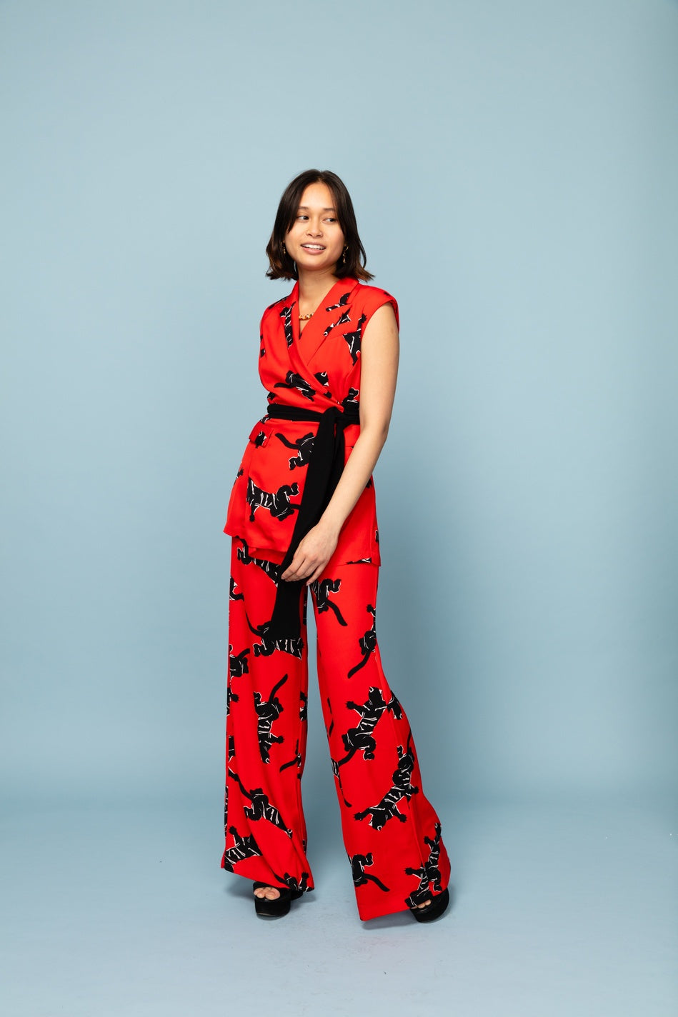 UK8 (due to the fact this is a wrap jumpsuit, the tie round the waist can be tied tighter or looser to make it also work for a UK6/UK10). UK12 (due to the fact this is a wrap jumpsuit, the tie round the waist can be tied tighter or looser to make it also work for a UK10/UK14).