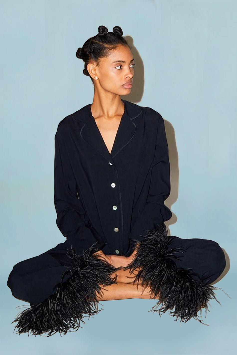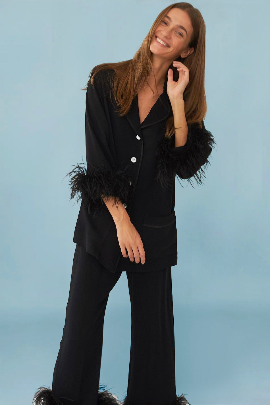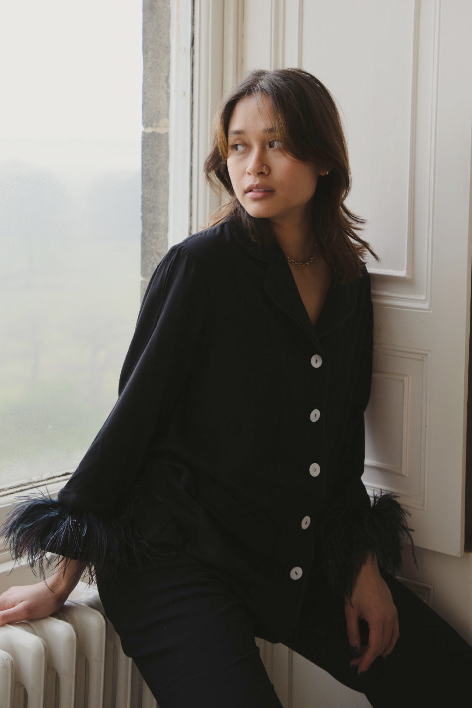 A brand favourite, the Party pyjama set is made from sustainably sourced viscose trimmed with frothy feathers around the cuffs