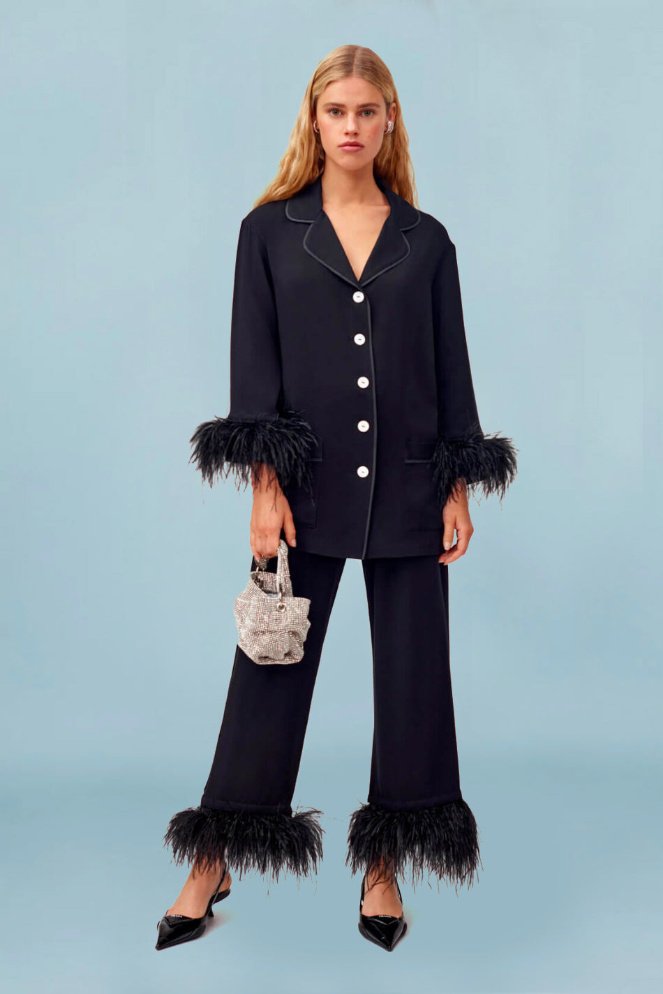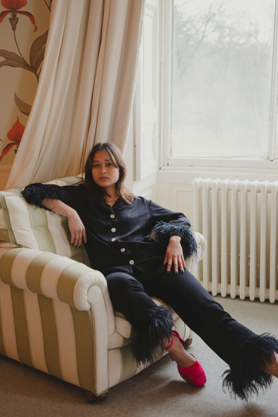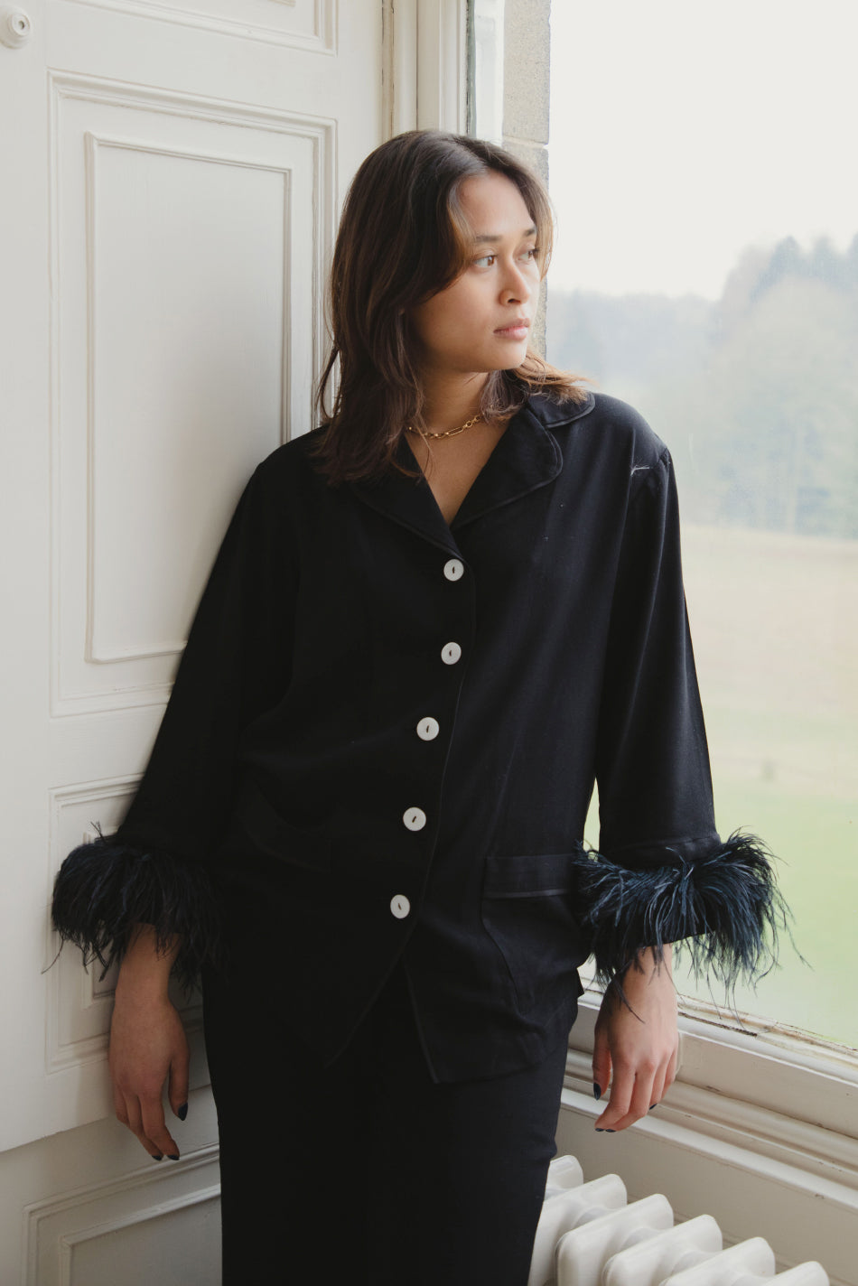 A brand favourite, the Party pyjama set is made from sustainably sourced viscose trimmed with frothy feathers around the cuffs