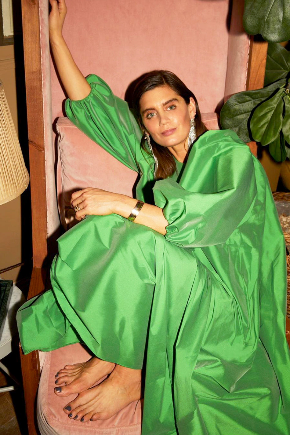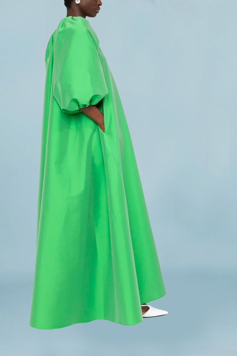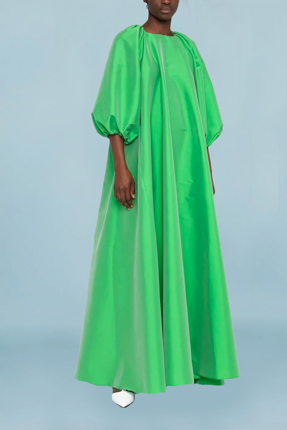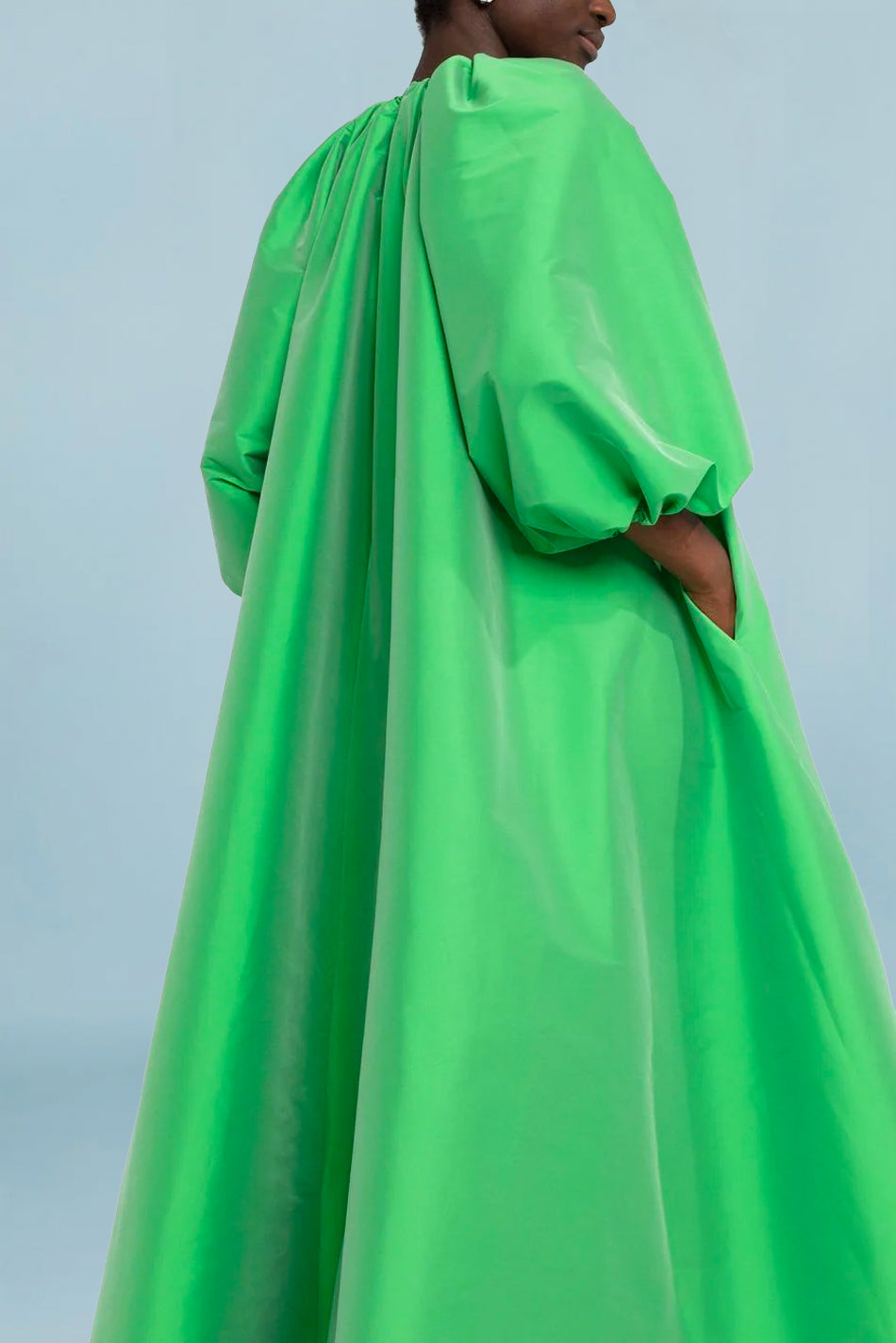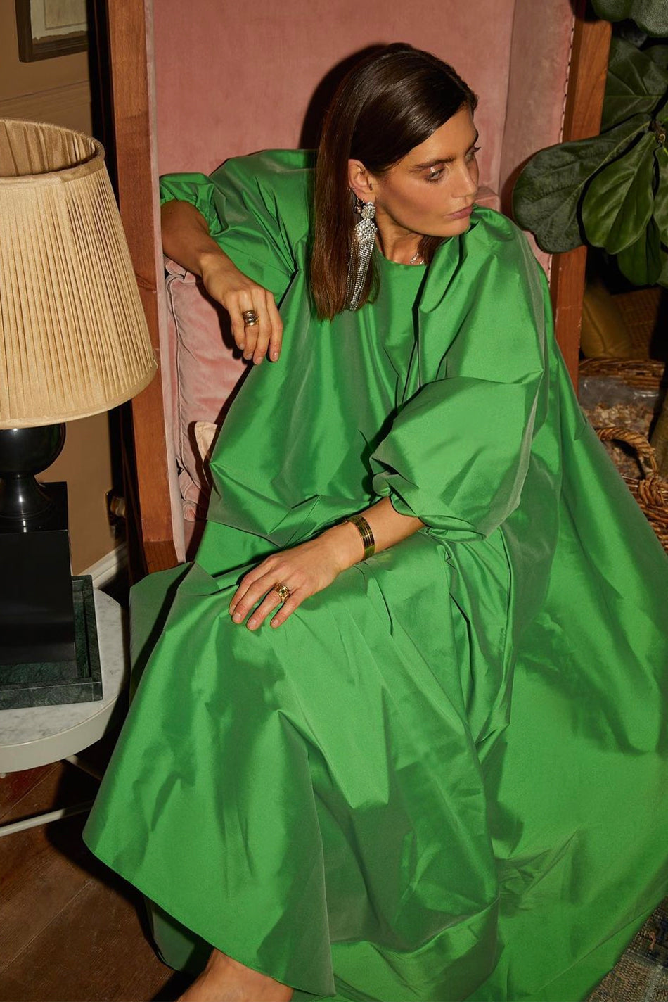 With a vibrant colourway and sculptural silhouette, the Lynn dress is an easy go-to. Designed in Belgium and cut from the label's signature crisp taffeta fabric, the dress flows effortlessly from the round neckline to voluminous sleeves and a floor-sweeping hem. There are some marks around the hem of this dress; the price has been reduced to reflect this - get in touch to see photos!