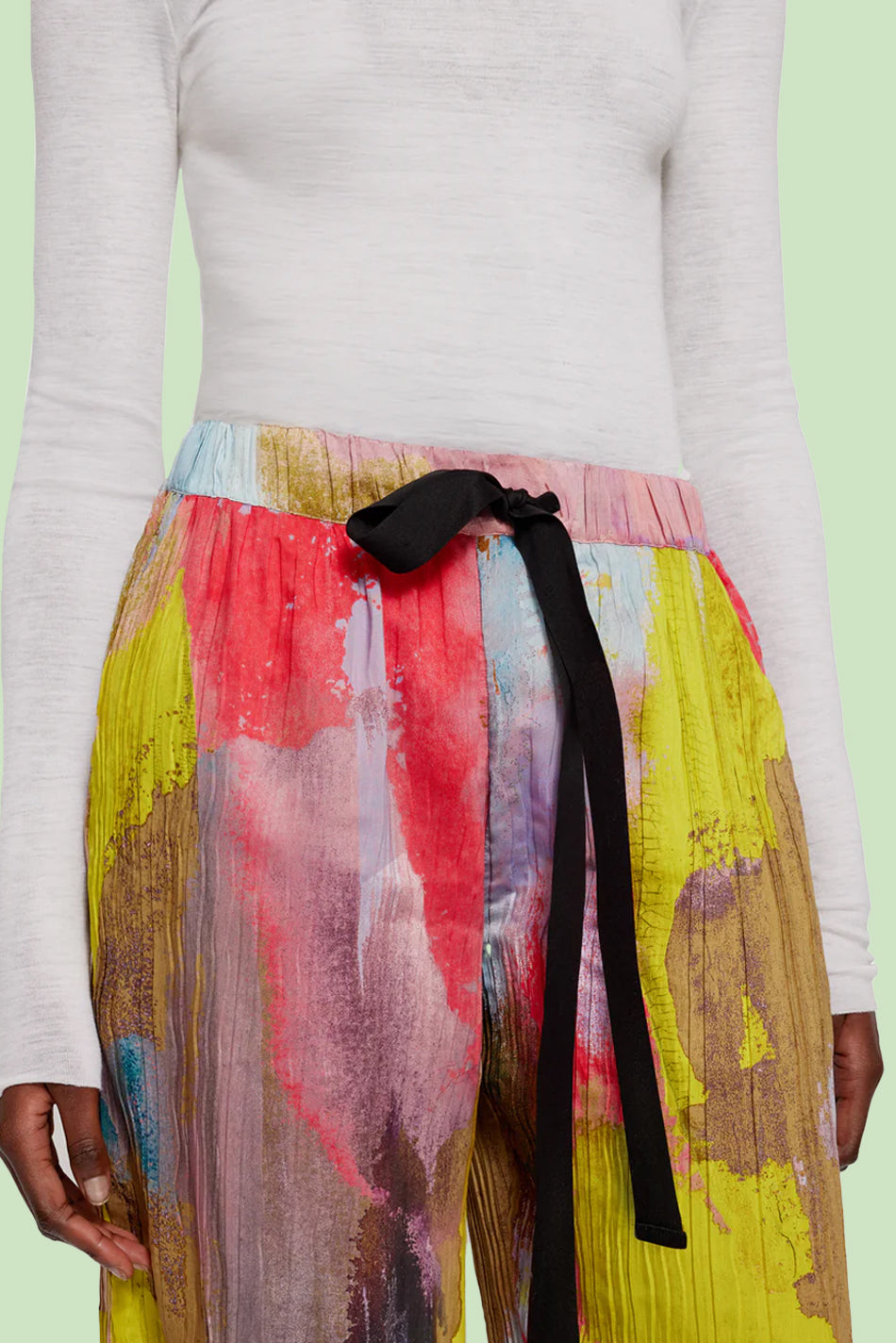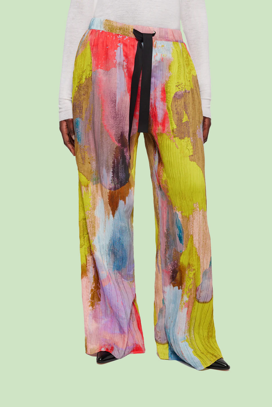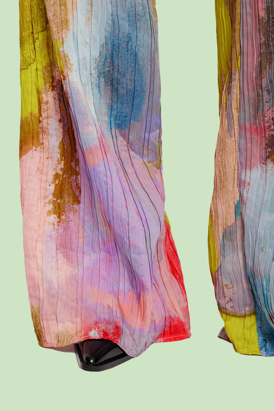 Part of our limited-edition capsule collection with internationally acclaimed designer, ROKSANDA, the Printed Plisse Silk Trouser feature an exuberant, abstract watercolour print; created in the Jigsaw atelier. Spread the joy in the wide leg cut with a grosgrain tie waist, and pair to co-ord perfection with the Printed Plisse Knotted Tabbard