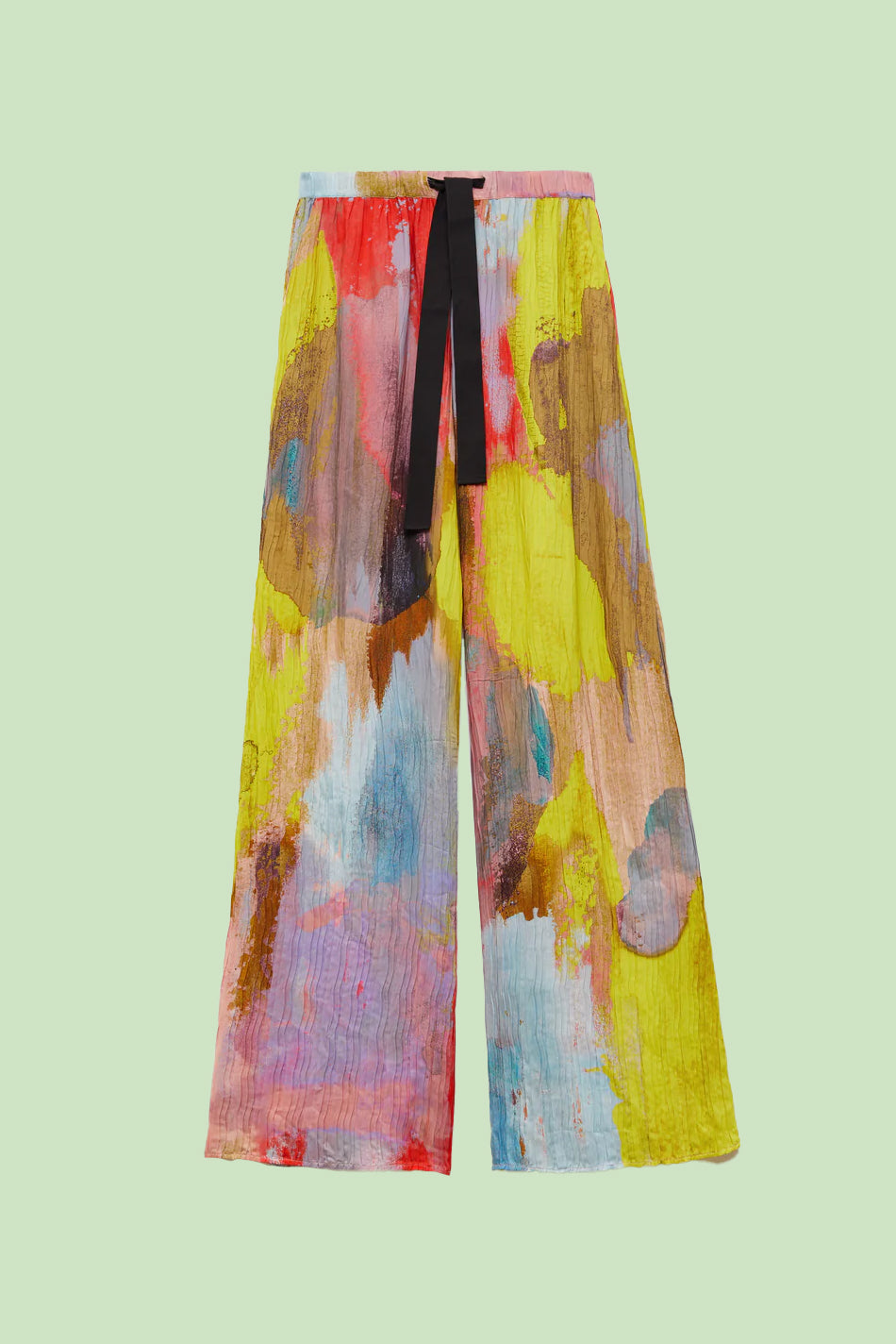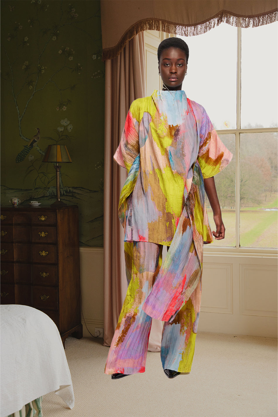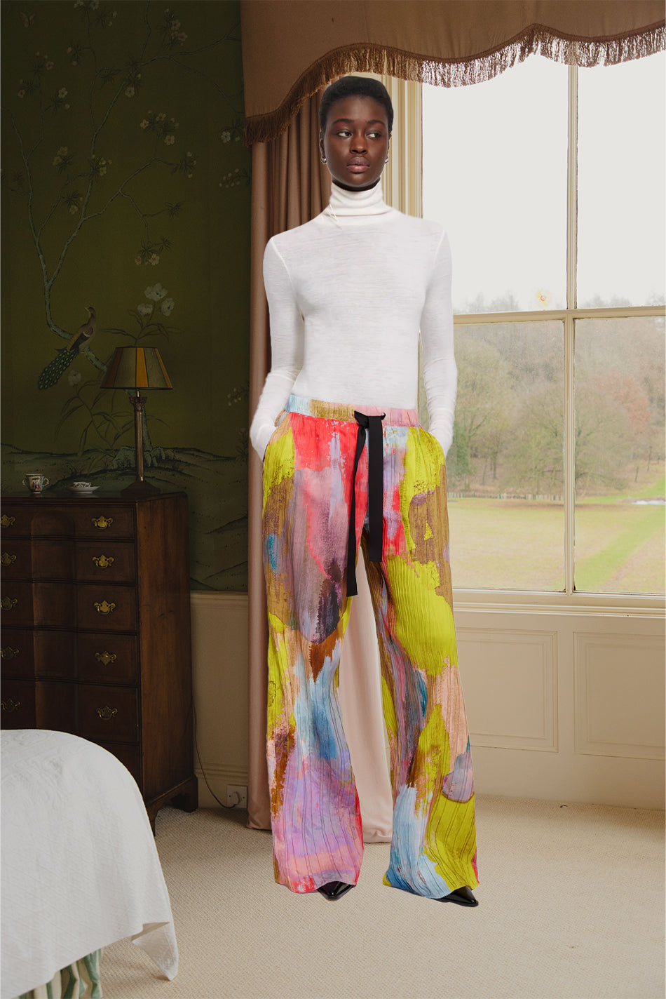 Part of our limited-edition capsule collection with internationally acclaimed designer, ROKSANDA, the Printed Plisse Silk Trouser feature an exuberant, abstract watercolour print; created in the Jigsaw atelier. Spread the joy in the wide leg cut with a grosgrain tie waist, and pair to co-ord perfection with the Printed Plisse Knotted Tabbard