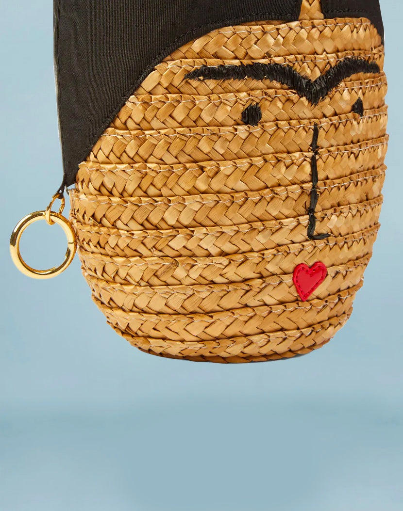 Exterior Composition: 100% wheat straw, handwoven straw to create a one-of-a-kind textured finish ; Interior Composition: 100% cotton, black grosgrain finish