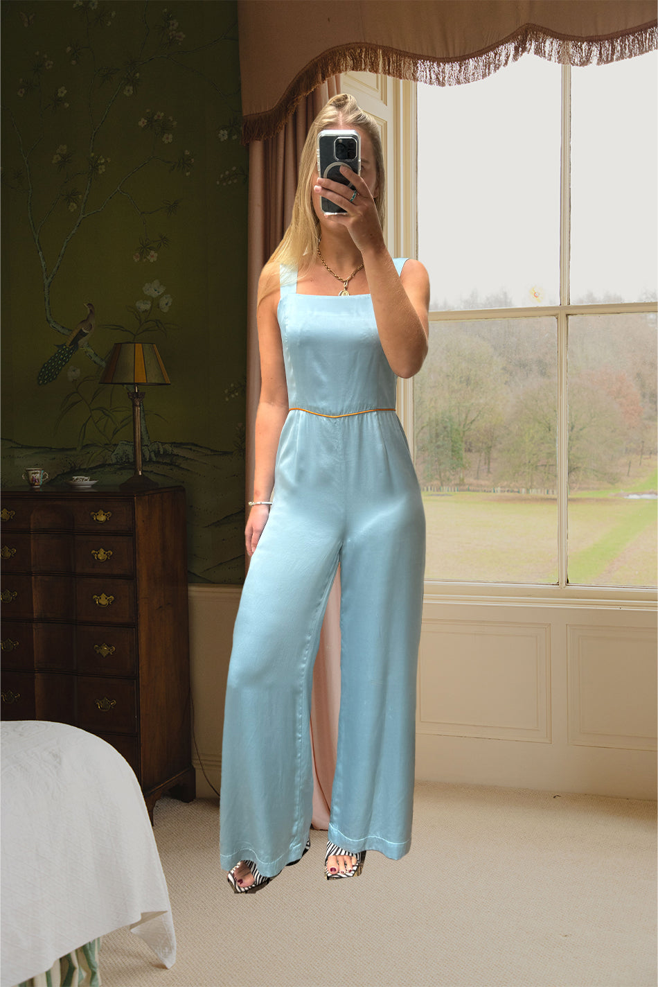 Made in double-weight crepe silk the Morgan jumpsuit is a universally flattering shape, with palazzo trousers and a fitted straight neckline bodice. The weight of the fabric means it falls beautifully